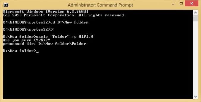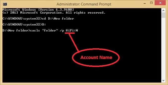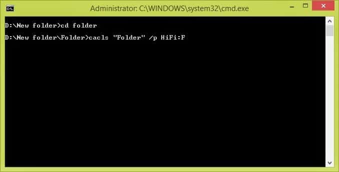 - cacls “Folder Name” /p “user name”: (“user name” With-ought double quotes)